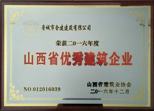 近日從省建筑業(yè)協(xié)會(huì)傳來(lái)喜訊,晉城市金建建筑有限公司榮獲2016年度山西省建筑企業(yè)。